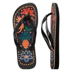 Com um design encantador e uma paleta de cores vibrantes, este chinelo é uma celebração da natureza e da vida ao ar livre. Seu solado macio e confortável oferece um ajuste perfeito, garantindo que seus pés desfrutem de todo o conforto durante as longas caminhadas na praia, passeios descontraídos ou festas ao pôr do sol.